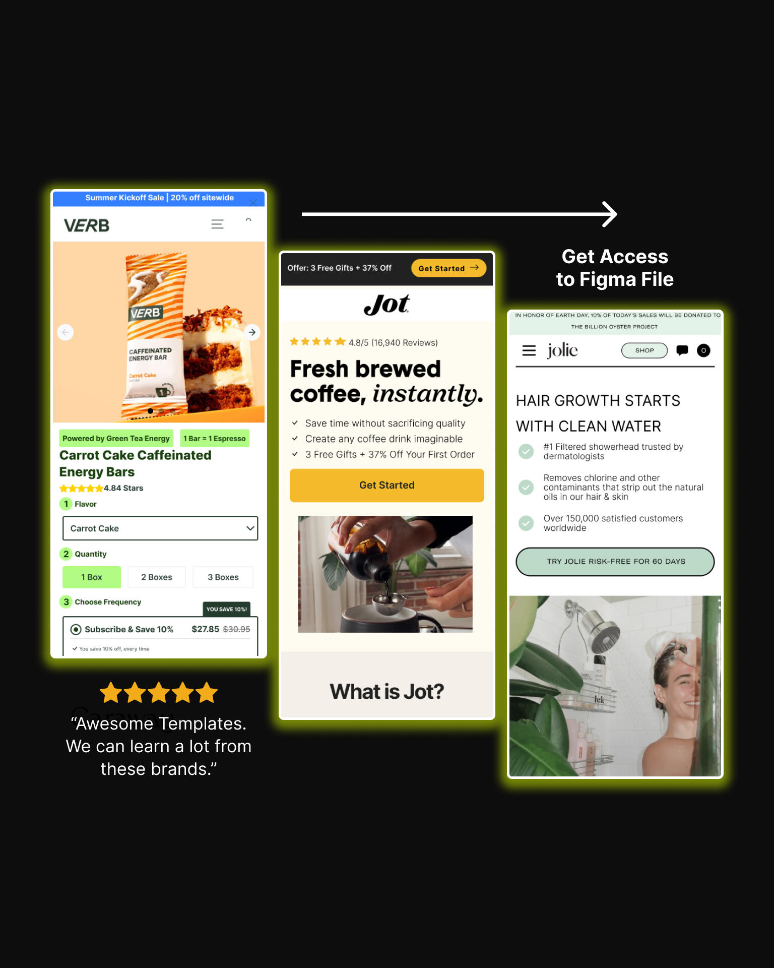 We've compiled the top performing landing pages for these 7-8 figure brands. All fully editable in Figma.Use them as inspiration when building your own landing page.